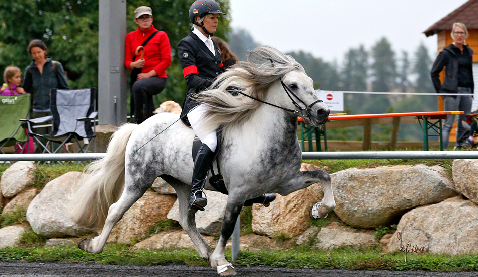 Inzwischen hat es sich sogar bei den Großpferdereitern rumgesprochen: Unsere kleinen Pferde sind ganz große Sportler. Die Islandpferde sind die einzige Pferderasse mit einer eigenen WM und wenn bei Pferdemessen und Ausstellungen Tölt und Pass vorgeführt werden, dann trampelt die ganze Halle und auch Nichtkundige sind beeindruckt. Wir selbst und auch viele unserer Einsteller sind aktive und erfolgreiche Turnierreiter mit Spaß am Wettkampf und an der besonderen und entspannten Turnieratmosphäre im Islandpferdesport. Und unsere Quadrille kann sich sehen lassen und muss sich auch vor professionellen Pferde-Show-Acts nicht verstecken. „Í raun og veru“!